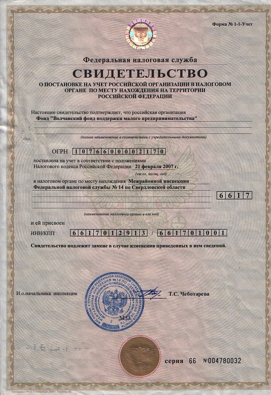 Свидетельство ИНН